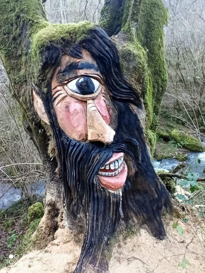 A lo largo del camino, además de disfrutar de un entorno natural espectacular, te sorprenderás con unas 50 esculturas de madera que representan figuras emblemáticas de la mitología cántabra. Estas obras, creadas por el artista local «Terio» Lombilla, añaden un toque mágico al paisaje y convierten la experiencia en algo único.